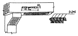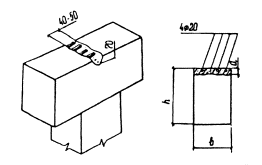Поперечная арматура у опор Размеры заготовок обусловливаются количеством и размерами подлежащих изготовлению образцов, а также возможностью вырезки стержней арматуры из железобетонного элемента без ущерба для его несущей способности. Выбор мест вырезки заготовок и их количество намечаются исходя из результатов вскрытий арматуры. Для того чтобы не ослабить элемент вырезкой заготовки, стержень арматуры, из которого вырезается заготовка, необходимо усилить согласно рис. 6.