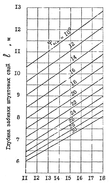 Глубина у причала d, м Рис.4. График зависимости глубины забивки шпунтовых свай