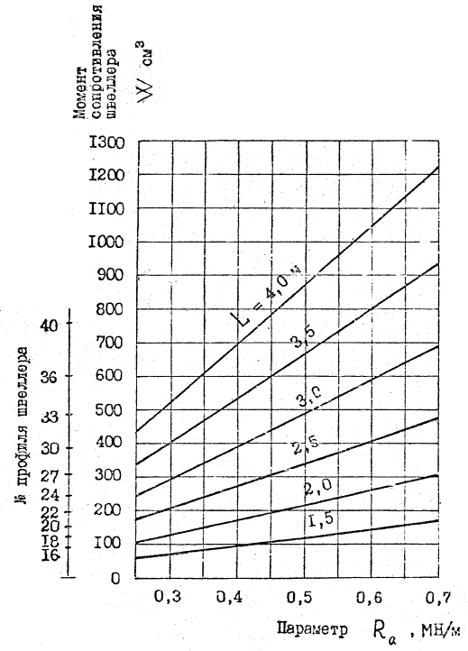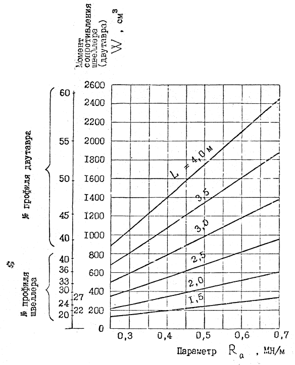 График зависимости момента сопротивления швеллера (двутавра) от параметра Rа и расстояния между анкерами для