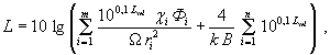 уровней звукового давленая в дБ, приведенное к условиям равенства площади