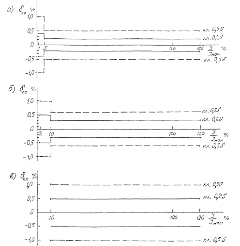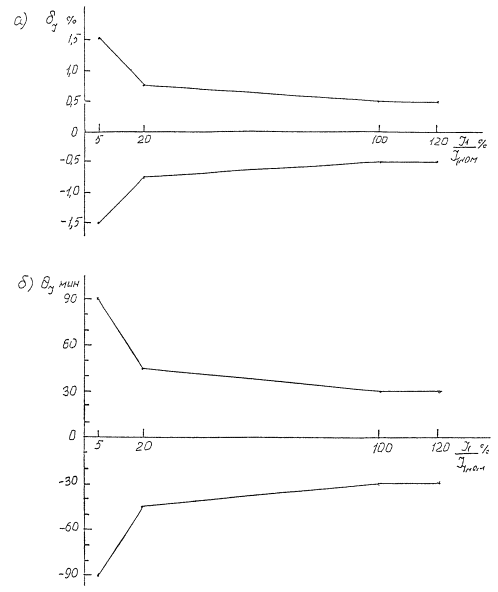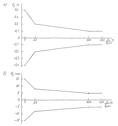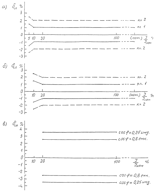 класса точности 1,0 при минимальном токе, равном 5 % от номинального Iном, и cos j = 1