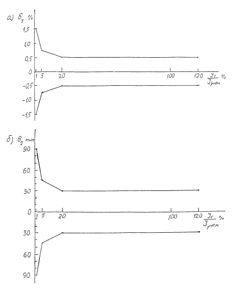 первичном токе ТТ, равном 5 % от номинального I1ном) согласно формуле (П.3.7)