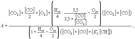 [СО], [О2] - объемная доля диоксида, оксида углерода и кислорода