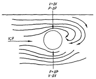 взаимосвязь между скоростью потока, диаметром цилиндра и частотой вихрей [3] S t= n D / V (2.1) где