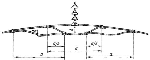 Рис. 4.2. Схема расположения гасителей вибрации в переходных пролетах длиной до 1500 м