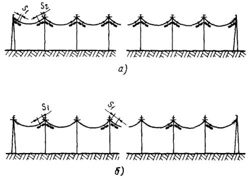 В зависимости от условий прохождения трассы линии и ее