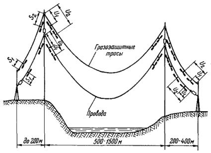проводов и тросов в больших воздушных переходах