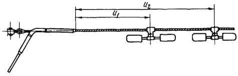 случае, если провод, подвешенный на роликовых устройствах, имеет защитные муфты, гасители устанавливаются на заданных расстояниях u1