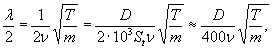 В тех случаях, когда частота образования воздушных вихрей в точности совпадает с одной из собственных частот провода, т.е. ωп = ν, формула для определения длины полуволны вибрации может быть представлена в виде