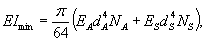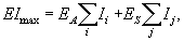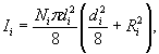 где EA, ES - модули упругости, соответственно, для алюминиевых и стальных проволок, Па; dA, dS - диаметры проволок из алюминия и стали, мм; NA, NS - число алюминиевых и стальных проволок в проводе; Ii, Ij - моменты инерции i-го повива алюминиевых и j-го повива стальных проволок, мм4. Моменты инерции повивов вычисляются по одинаковым формулам как для алюминиевых, так и для стальных проволок