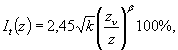 перпендикулярно или под углом не менее 45° к преобладающему направлению ветра. 2.4. Топографические условия прохождения трассы (рельеф местности, растительный покров и всякого рода сооружения вблизи линии) оказывают существенное влияние на характер воздушных потоков в приземных слоях. Наибольшее количество энергии передается проводу при действии поперечного равномерного (ламинарного) воздушного потока. В естественных условиях воздушный поток всегда имеет нарушения ламинарного течения, возникающие при обтекании различных преград. Неравномерность воздушного потока характеризуется интенсивностью турбулентности. Ровная, открытая для ветра местность благоприятствует равномерному течению воздушного потока и создает условия, способствующие интенсивной вибрации проводов. Сильно пересеченный рельеф местности (горные районы), наличие под линией или в непосредственной близости от нее глубоких оврагов, насыпей, всякого рода сооружений и древесной растительности в той или иной степени нарушают равномерность воздушного потока, повышают интенсивность турбулентности и создают на таких участках менее благоприятные условия для проявления вибрации. На участках линий, проходящих по редкому или низкорослому лесу, садам и паркам, по застроенной местности, и при наличии близ линии лесных массивов вибрация менее устойчива и ее относительная продолжительность меньше. При прохождении трассы линии по лесному массиву с высотой деревьев, превышающей высоту подвеса проводов, проходящая по просеке линия оказывается защищенной от возбуждающих вибрацию поперечных ветров, что существенно снижает, а в некоторых случаях может устранить опасность повреждения проводов вибрацией. Количественно интенсивность турбулентности может быть выражена формулой [2] где k - коэффициент трения в приземном слое; zν