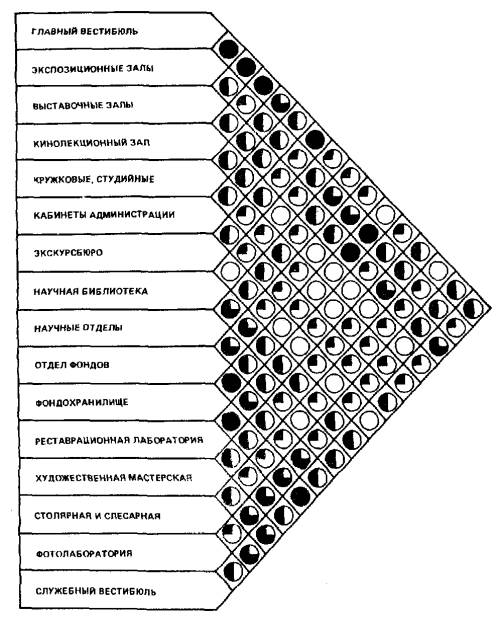 максимальная степень связи, помещения должны быть сближены; ○ минимальная
