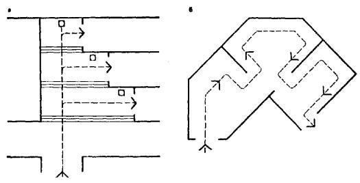 требующие хорошего естественного освещения и защиты от прямого света: шедовое освещение, жалюзийный подвесной потолок для рассеянного освещения; г - двустороннее