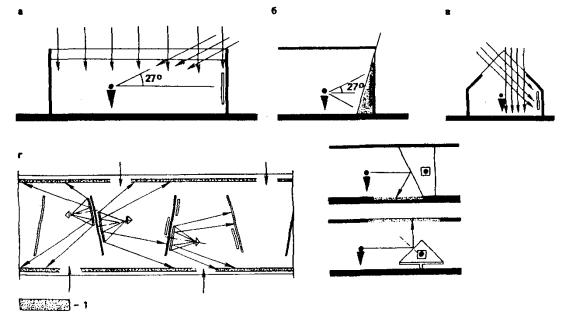 верхнего освещения при отсутствии регулируемой системы отражения; г -