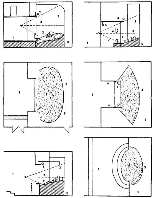 4 - светильники; 5 - захолстовое пространство; 6 - линия горизонта;