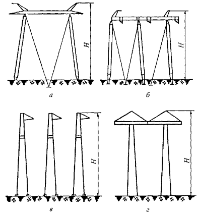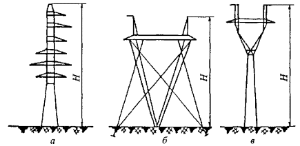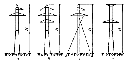 500 кВ между собой и с ВЛ более низких напряжений - высота наиболее высокой