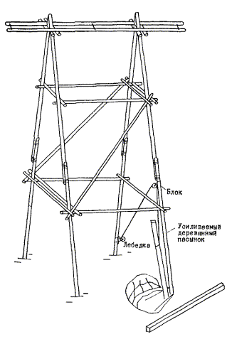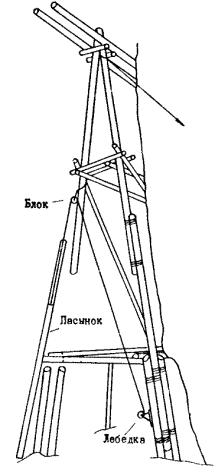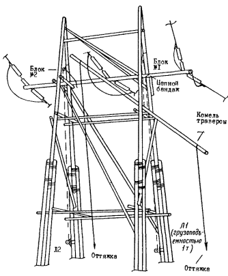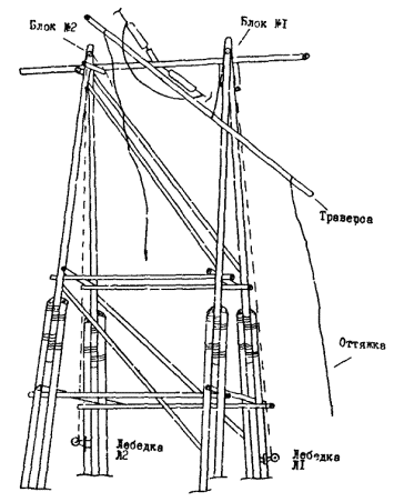 подъем опоры производится через блок, устанавливаемый на стойках «азика».