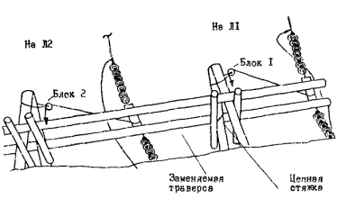 нижней траверсой. К верхней траверсе крепится блок (4) заряженный тяговым