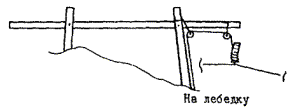 устанавливается ручная лебедка. С помощью лебедки, тягового троса и блока,