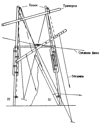 оттяжки применяются после установки опоры, страхующие оттяжки - при подъеме