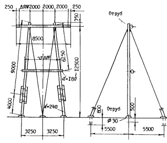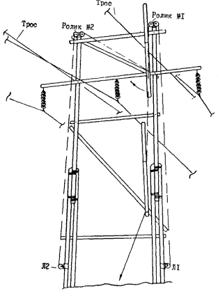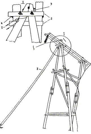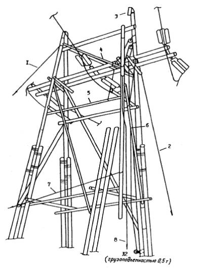 устанавливается на расстоянии 15 - 20 м от вершины поднимаемой опоры. Вторые