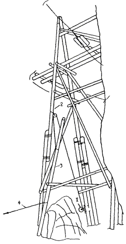 веревочная лестница (2) для подъема электромонтера после установки опоры.