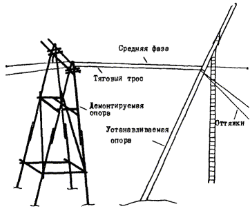 опускаются провода крайних фаз вместе с гирляндами изоляторов