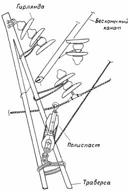 гирляндой и крепится к траверсе средняя фаза. Аналогично, используя головные
