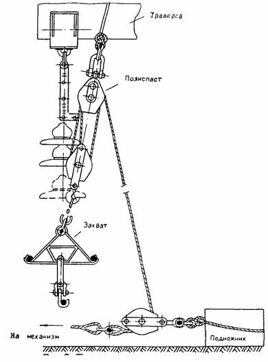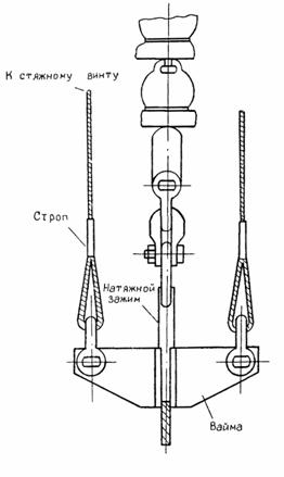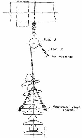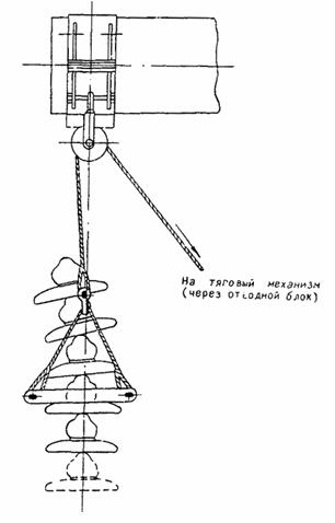 полиспаста дается тяжение до создания слабины в сцепной арматуре гирлянды с