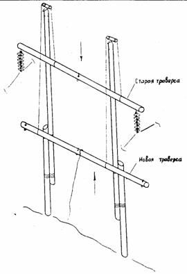 оси ВЛ. К середине новой траверсы привязывается тормозная оттяжка
