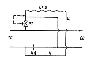 Расход циркуляционной воды СГВ в ЦТП (КТП = 0,25) практически равен средненедельному значению расхода воды в СГВ:
