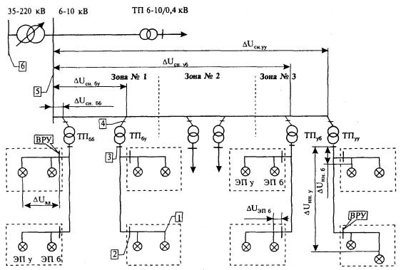 электрической энергии по установившемуся отклонению напряжения в режимах