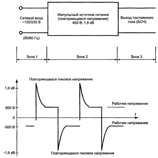 Пути утечки для схем, в которых генерируются повторяющиеся пиковые напряжения Зона 1. Пути утечки свыше 2,0 мм, обусловленные минимальным воздушным для