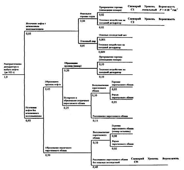 вероятность развития аварийной ситуации по сценарию C1: РC1 = 10-4