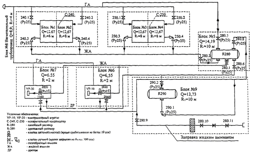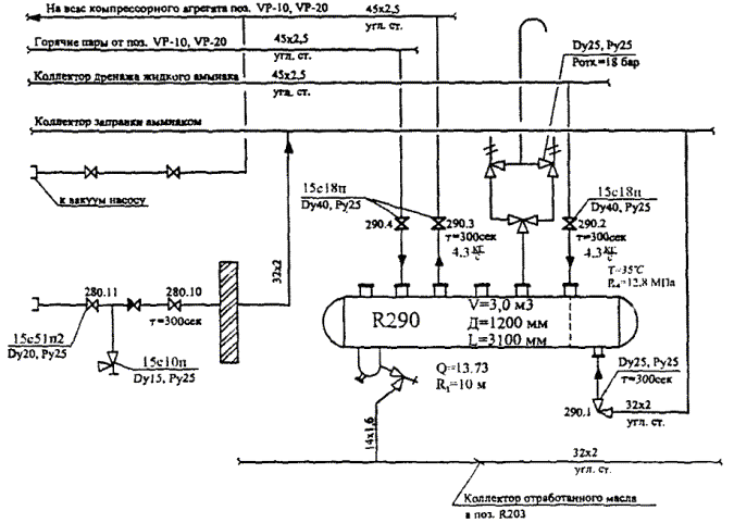 технологическая схема блока № 9 (дренажный ресивер поз. R290)