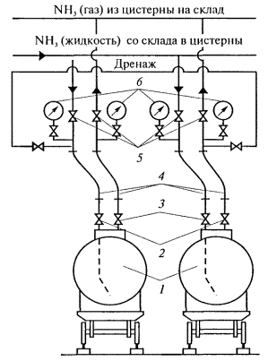 жидкого аммиака (сливоналивные пункты) и склады для хранения жидкого аммиака