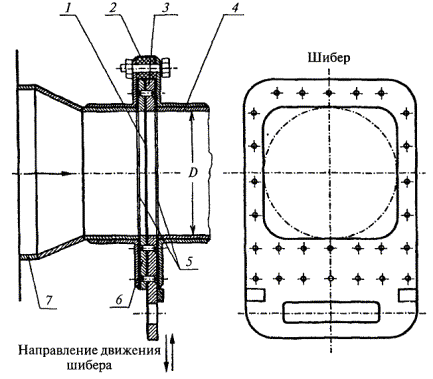 трубопровод; 7 - взрыворазрядное устройство шиберного типа Примечание. Взрыворазрядные