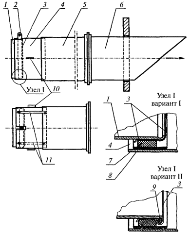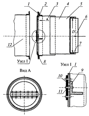 соединяющий (входной) патрубок; 5 - окантовочный пруток патрубка; 6 -
