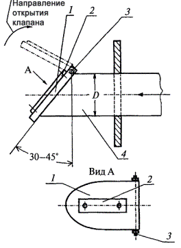 створчатого клапана условно повернута на 90°, при установке клапана его ось