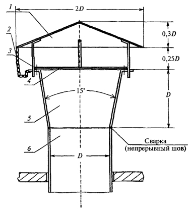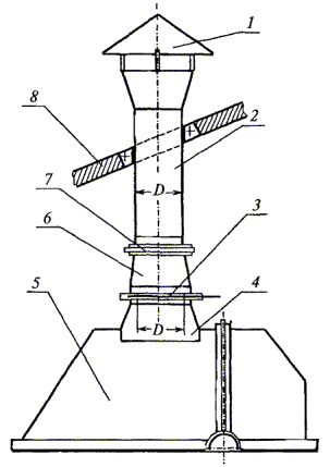 зонт; 2 - вертикальный отводящий трубопровод с диффузором; 3 -