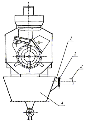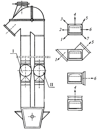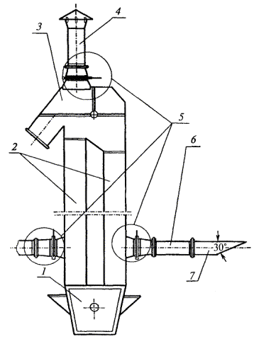 нории; 4 - вертикальный отводящий трубопровод с диффузором; 5 -
