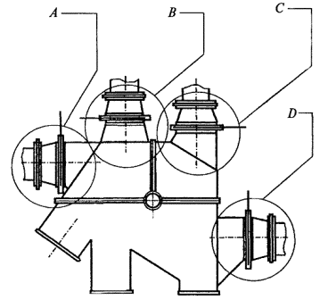 варианты расположения входных патрубков под взрыворазрядные устройства на