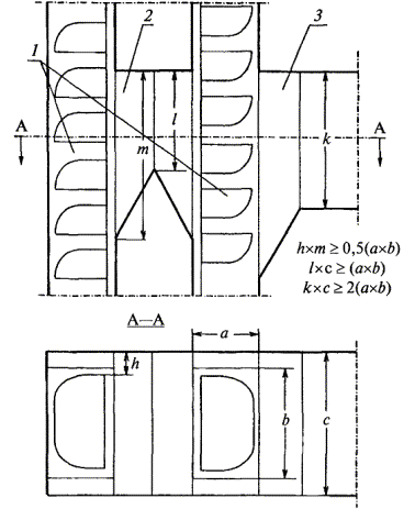 горизонтальными отводящими трубопроводами; В, С - взрыворазрядные