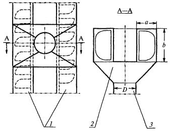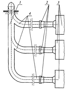 норийные трубы; 2 - объединяющий переходник; 3 - входной