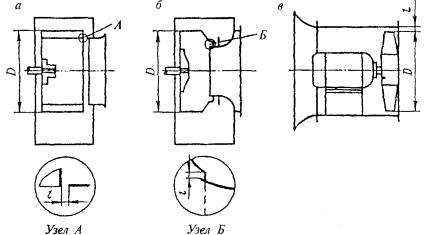 зазоров вентиляторов: а - радиальных типа В.Ц14-46; б - радиальных типа В.Ц4-70; в - осевых (l = 0,5-1,0 %D) Приложение