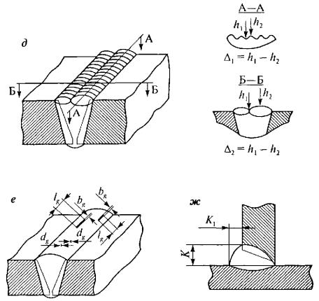 деталей у краев шва (для соединений штуцеров, а также для угловых и тавровых