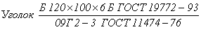 Уголок гнутый неравнополочный повышенной точности профилирования Б, шириной большей полки 120 мм, шириной меньшей полки 100 мм, толщиной 6 мм по ГОСТ 19772 из заготовки повышенной точности прокатки А, 3-й категории по ГОСТ 19281 из стали 09Г2: