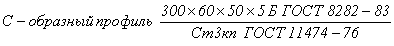 Профиль гнутый С-образный равнополочный высотой 300 мм, шириной 60 мм, шириной полки 50 мм, толщиной 5 мм по ГОСТ 8282, из заготовки нормальной точности прокатки Б, с механическими свойствами по ГОСТ 14637, из стали марки Ст3кп: