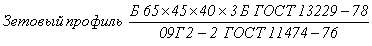 Профиль гнутый зетовый неравнополочный обычной точности профилирования В, высотой 65 мм, шириной большей полки 45 мм, шириной меньшей полки 40 мм, толщиной 3 мм по ГОСТ 13229, из заготовки нормальной точности прокатки Б, 2-й категории по ГОСТ 17066, из стали марки 09Г2: