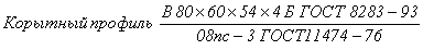 Профиль гнутый корытный равнополочный обычной точности профилирования В, высотой стенки 80 мм, шириной 60 мм, высотой полки 54 мм, толщиной 4 мм по ГОСТ 8283 из заготовки нормальной точности Б, 3-й категории по ГОСТ 1577, из стали марки 08пс: